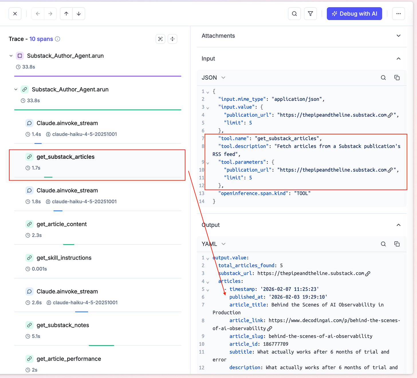 This level of visibility is critical for production agents. You can see exactly what went wrong and where.