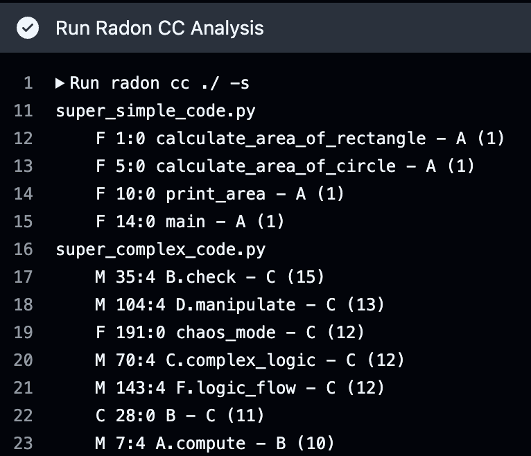 Iโve created a Github Repo to simulate the process: ๐จ๐ปโ๐ป Code Quality Checker with Radon and Xenon