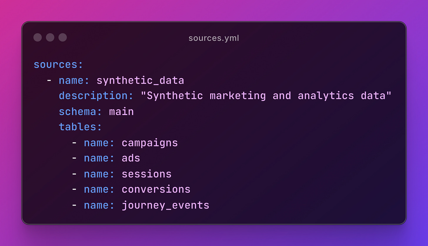 The source() function creates dependency management that everything else builds upon. No business logic here, just clean access to your raw tables.
